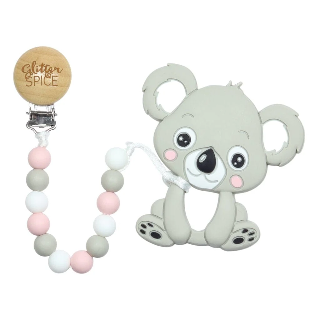 Glitter & Spice Koala Silicone Teether with Pacifier Clip