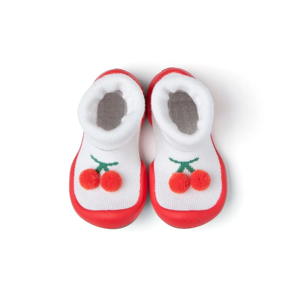 Komuello Sweet Cherry Baby Rubber Sole Sock Shoes