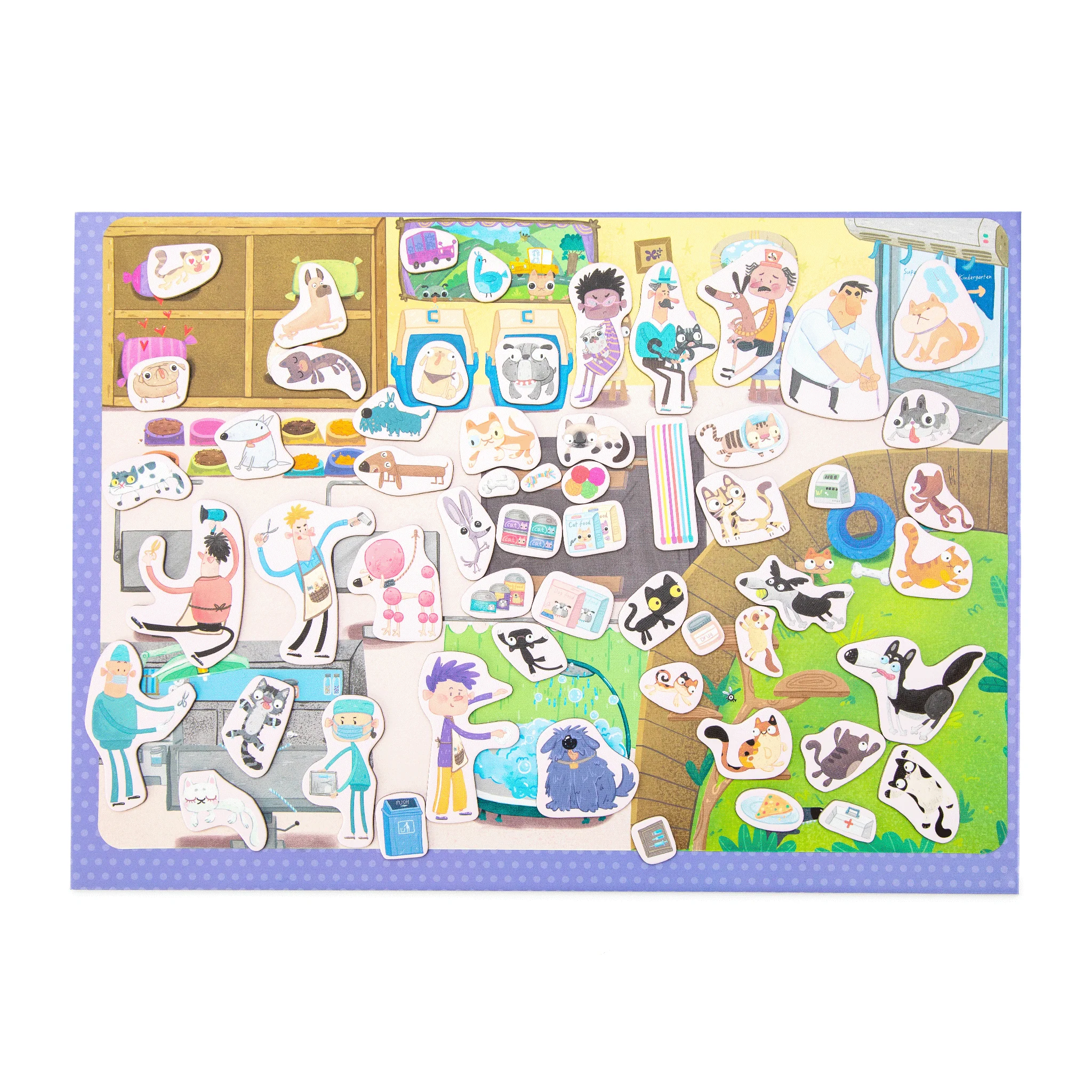 - 3x Paper Play Scene Sheets (The Supermarket, Kindergarten and Pet Hospital)