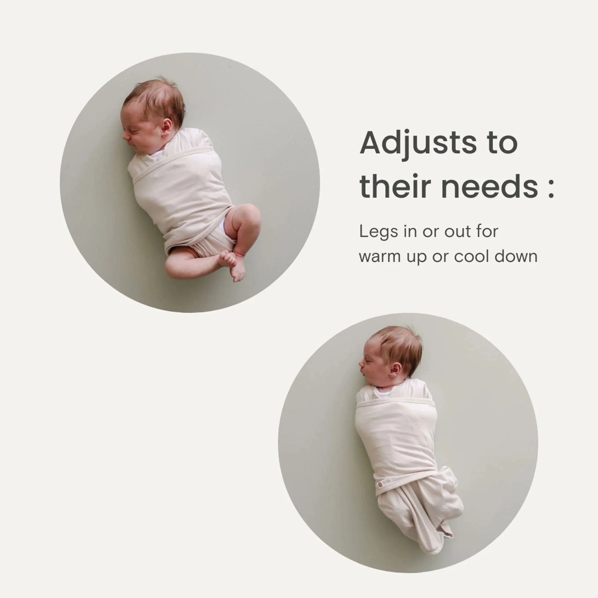 Unlike traditional wraps, this swaddle is packed with smart features. It has foldable mittens to protect baby from scratches, and an "arms-in / arms-out" option to let them stretch. It also features the world's only patented "legs-in / legs-out" design, allowing you to keep baby warm or cool them down to prevent overheating, all without unswaddling.